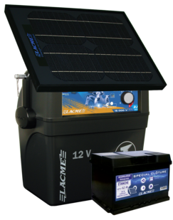 Ce kit solaire 14 W est un électrificateur 2 J / 15000 V livré de série avec un accumulateur 62 Ah et un panneau solaire 14 W équipé d'un régulateur.