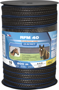 Les rubans renforcés comportent une chaîne plastique renforcée (PEHD Ø 0.50 mm). Les conducteurs sont de très gros diamètre Ø 0.30 mm et mixtes cuivre / inox. Leur résistance à l'arrachement est exceptionnelle et le groupage exclusif des conducteurs permet une résistance à l'étincelle parfaite. À utiliser dans les zones ventées et agressives. Ne pas espacer les poteaux de plus de 3 mètres.