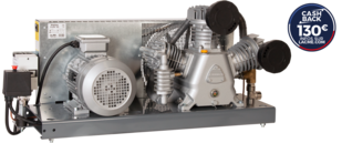 Groupe tricylindre en W, biétagé - Composants longue durée : Plaques - clapets doubles : clapets haut rendement Triple segmentation Cylindres en fonte Culasses en fonte Refroidissement intermédiaire (entre étage)Filtres à air à faibles pertes de charge : - 1 filtre par cylindre