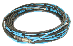 Tuyaux jumelés pour l'alimentation en produit et en air d'un pistolet Mixte depuis une pompe Mixte.