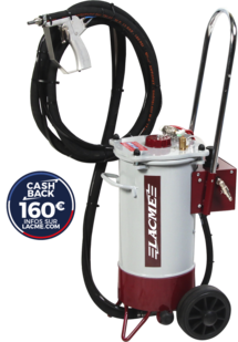 L'aérogommeuse est une machine complète et compacte, munie d'une réserve de sable de 10 L, idéale pour les petites applications de décapage. Son réservoir sur roues vous permettra de la déplacer très facilement (2 grosses roues à l'arrière pour les déplacements penchés sur de "longues distances")