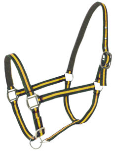 En polypropylène double épaisseur Bouclerie acier chromé Oeilletons de renfort Double réglages muserolle et têtière